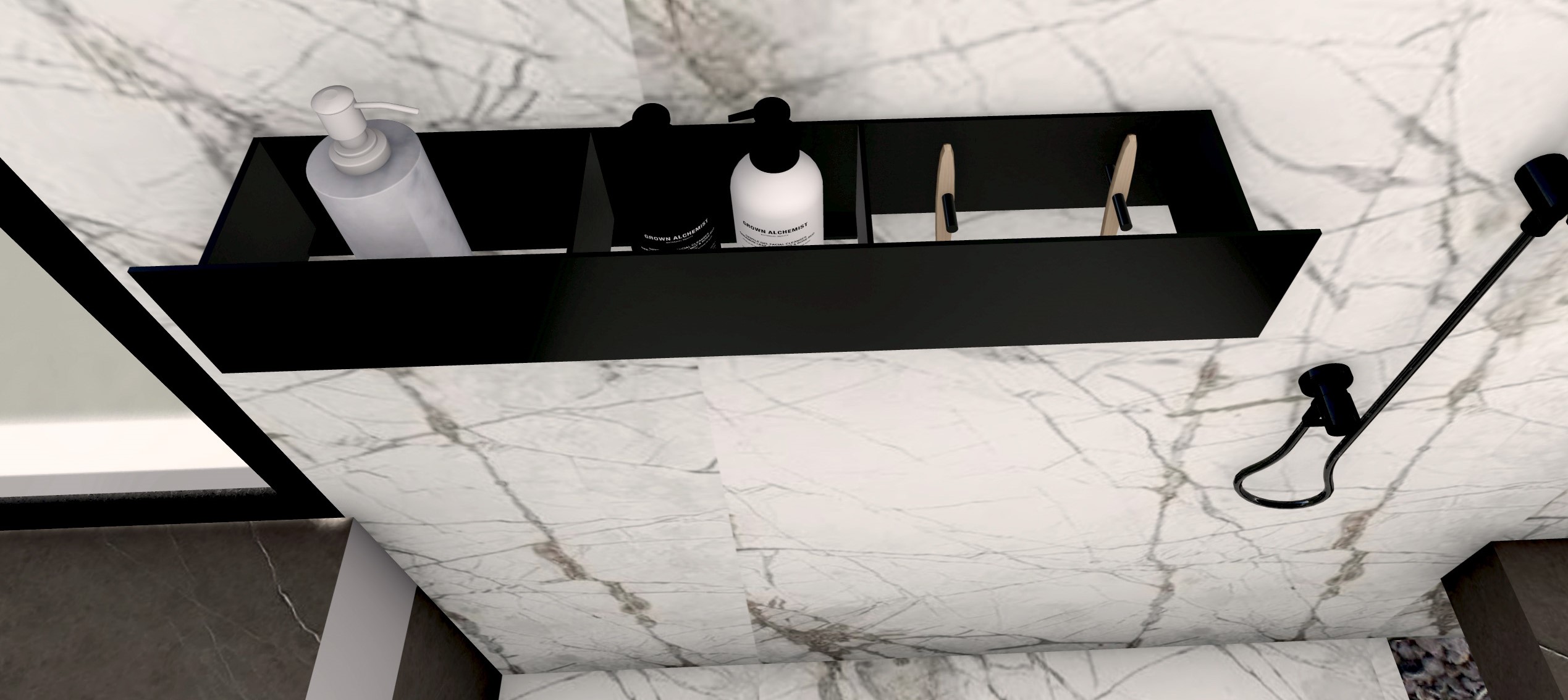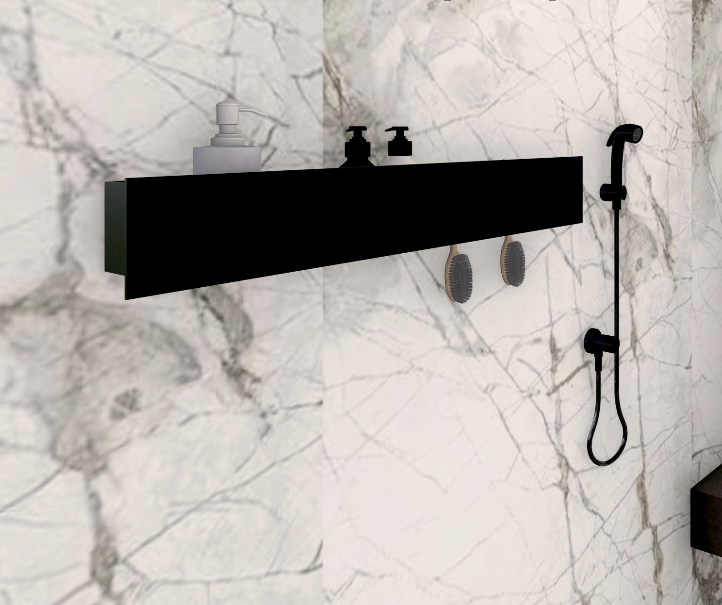 El Estante con ganchos combina dos funciones: colocar toalla de mano, colgar accesorios para ducha y guardar dispensadores de jabón.